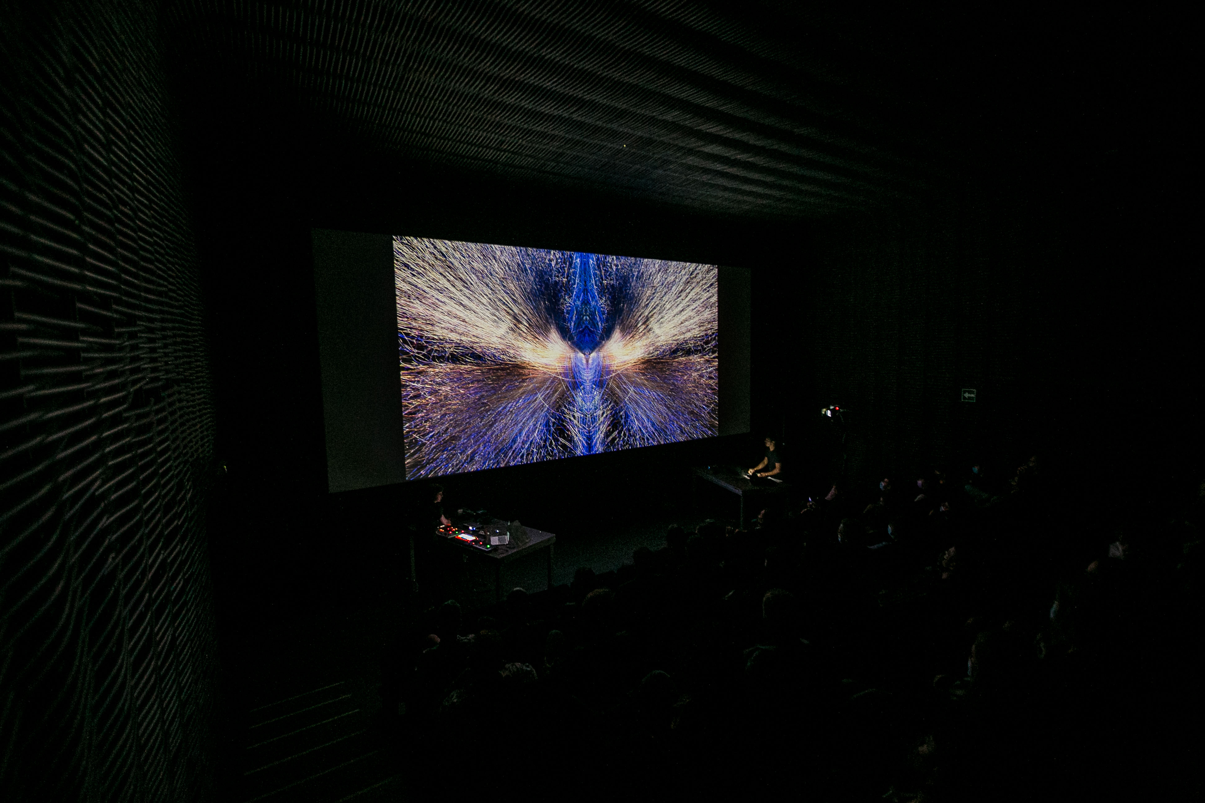 Volvía LEV al Matadero en su fecha habitual. Volvía en el formato habitual en tiempos de pandemia, con 3 ejes bien diferenciados: Por un lado Vortex y sus espacios de realidad aumentada, instalaciones audiovisuales y, esta vez en formato presencial, la parte más audio que un festival de electrónica visual puede ofrecer.